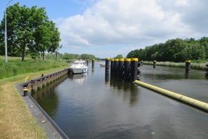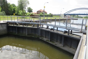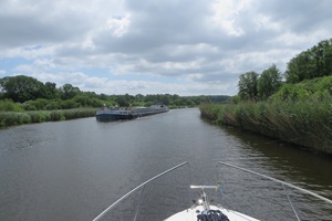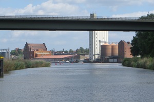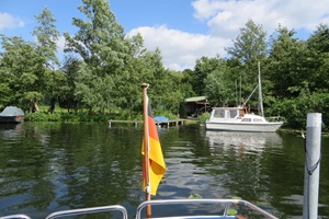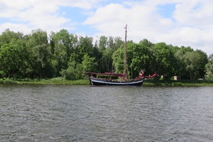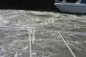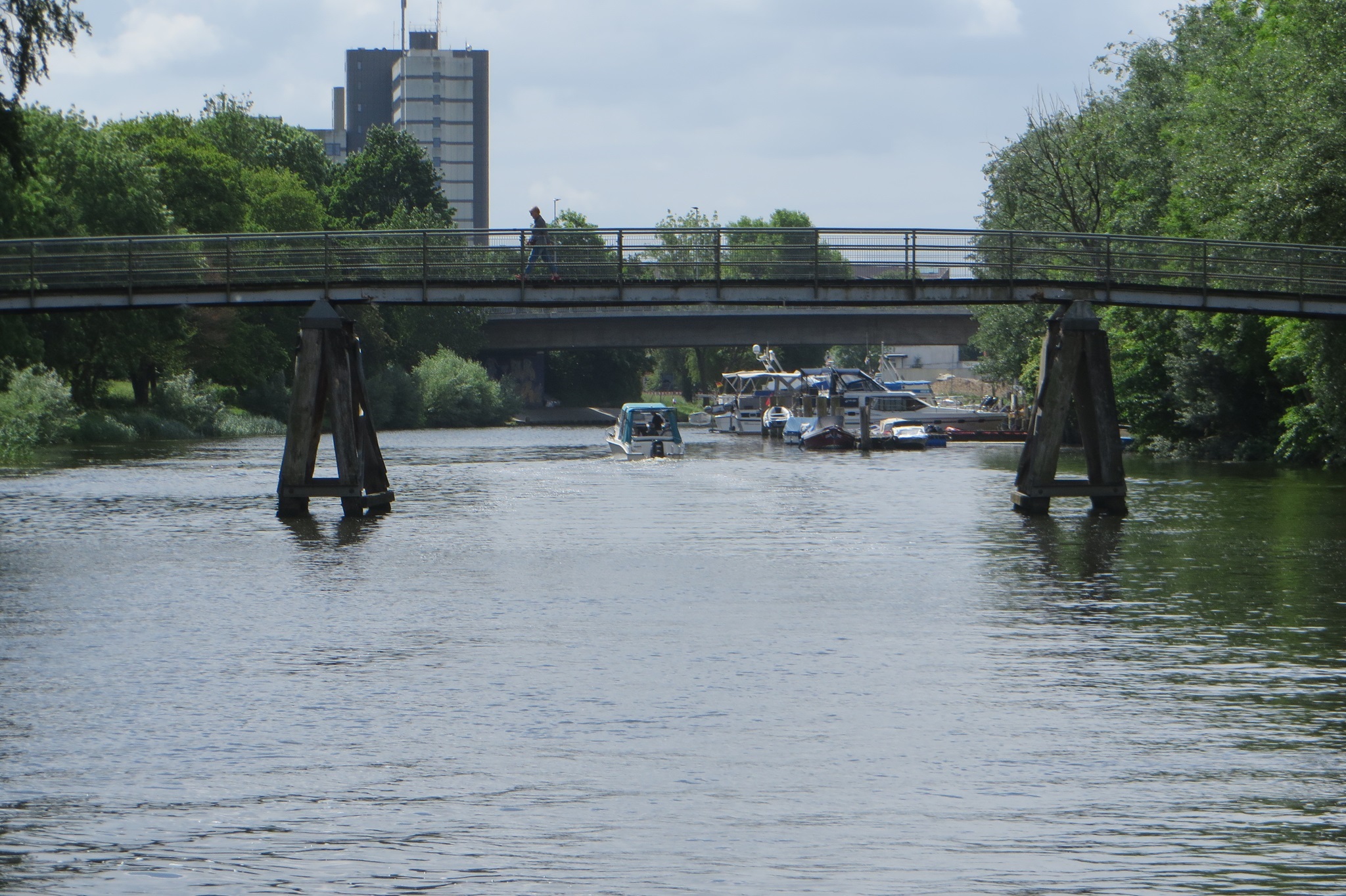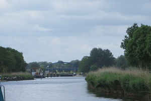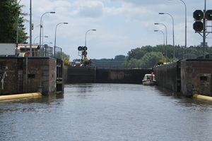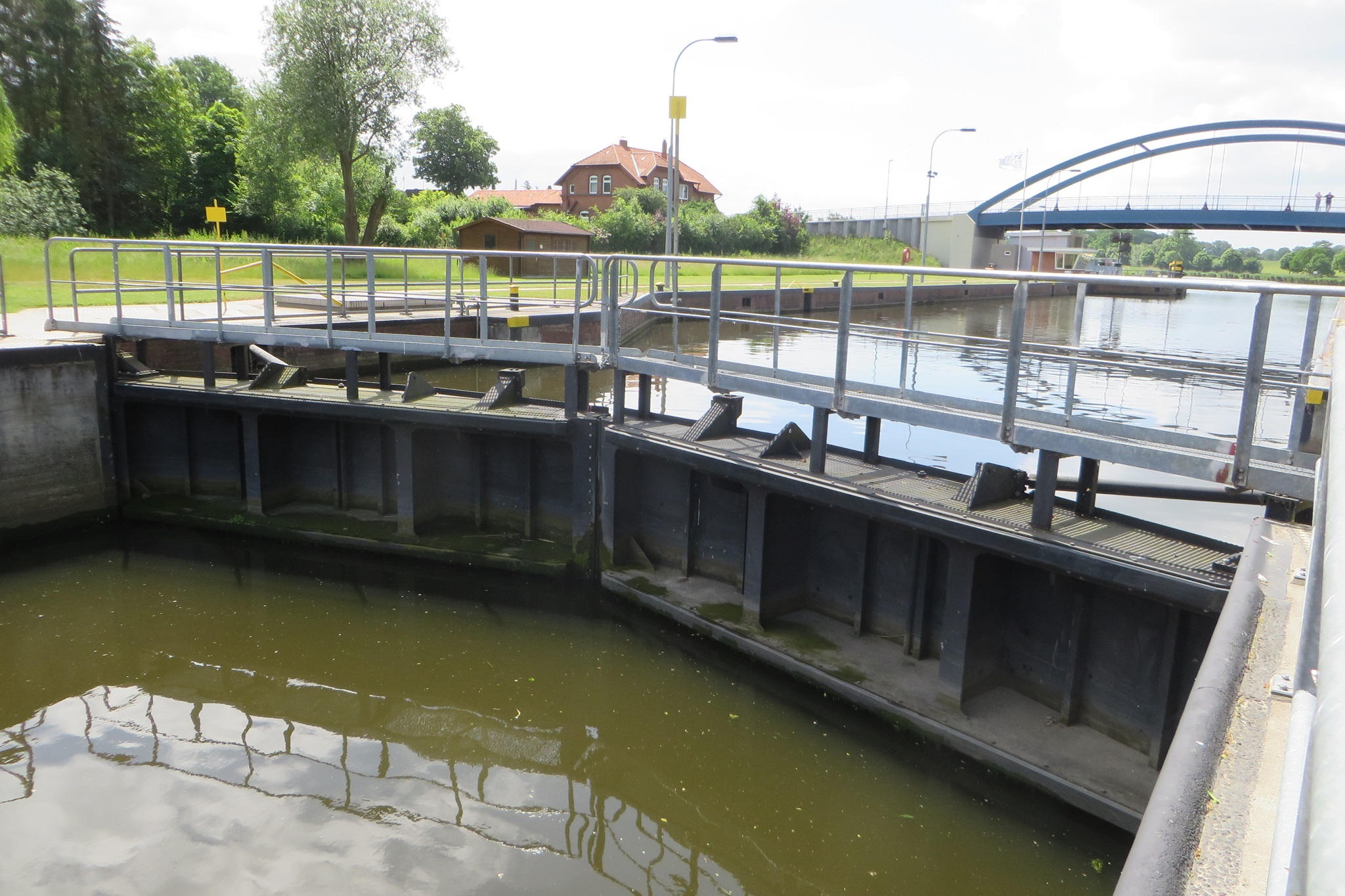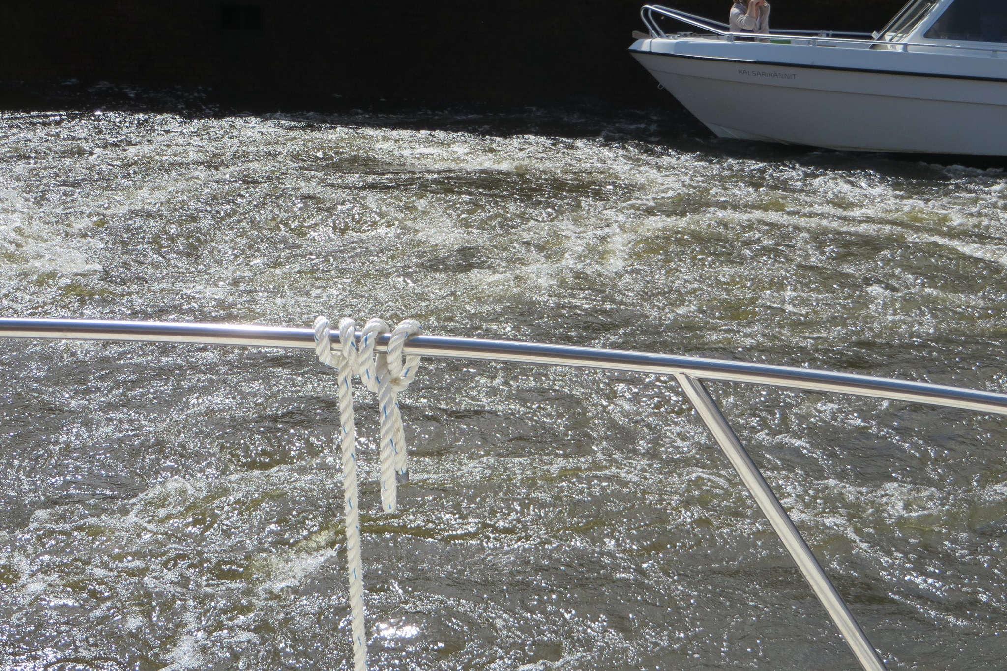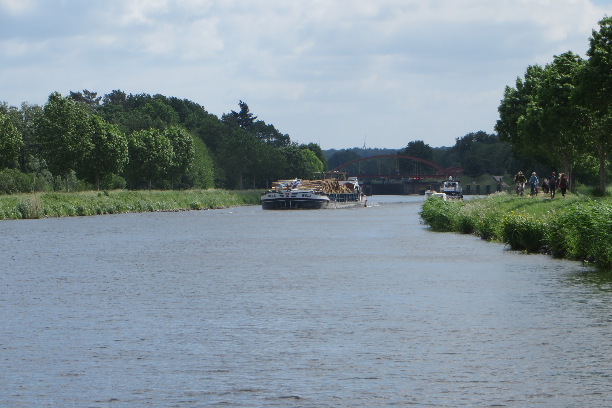 Wir sind langsam die Trave rauf geschippert. Durch Lübeck durch, bis wir an der ersten Schleuse dann eine 3/4 Stunde Pause einlegen mussten.