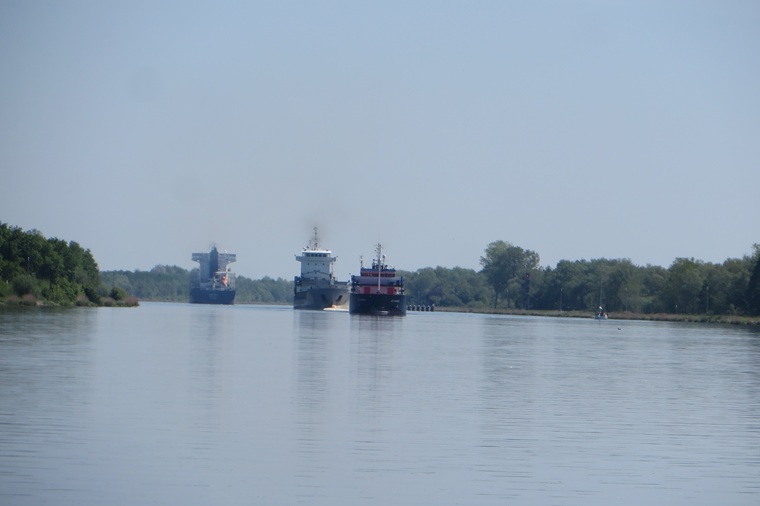 Auf dem Kanal kommen einem auch mal mehrere große Dampfer auf einmal entgegen.