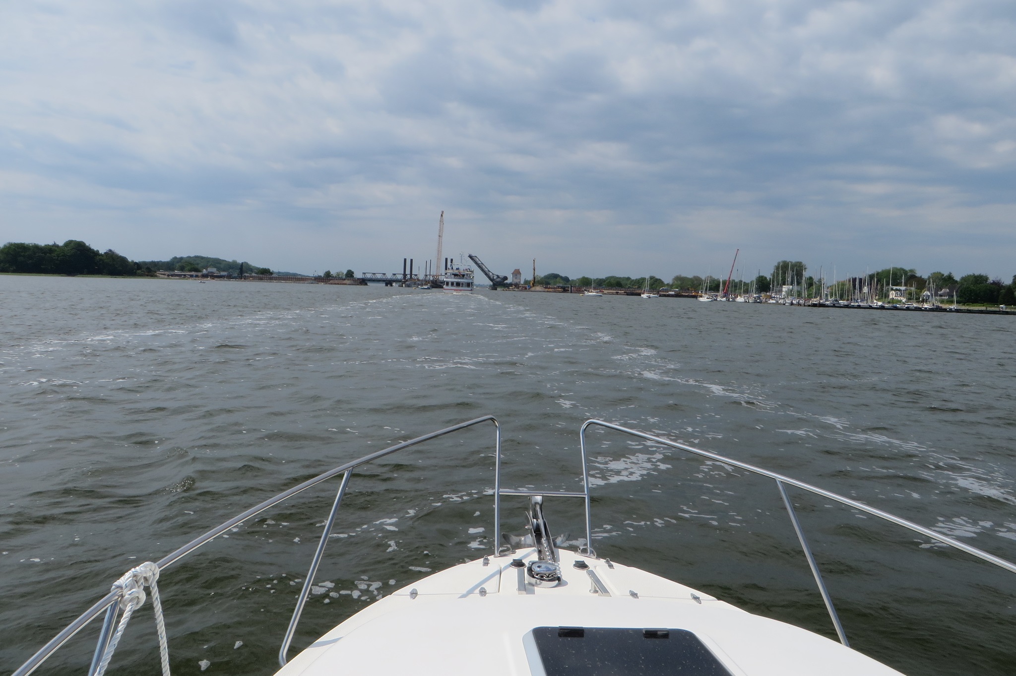 Der musste wohl ein wenig Gas geben, damit er zur Brückenöffnung an der Lindaunisbrücke ist.