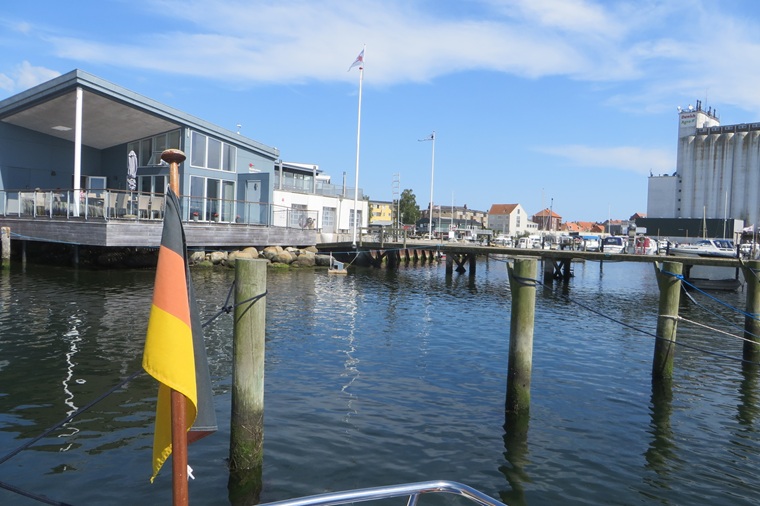 Von weitem sieht der Hafen erstmal nicht einladend aus, wegen des hohen Speichers der davor steht.
