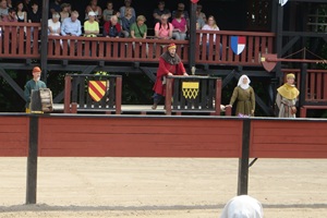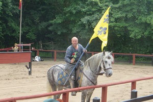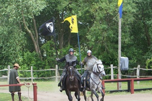Das war auch sehr schön gemacht. Zuerst mussten die Ritter Ihre holde Maid auswählen. Dann mussten verschiedene Aufgaben mit Schwert und Lanze ausgeführt werden und zum Schluss dann das große Duell.