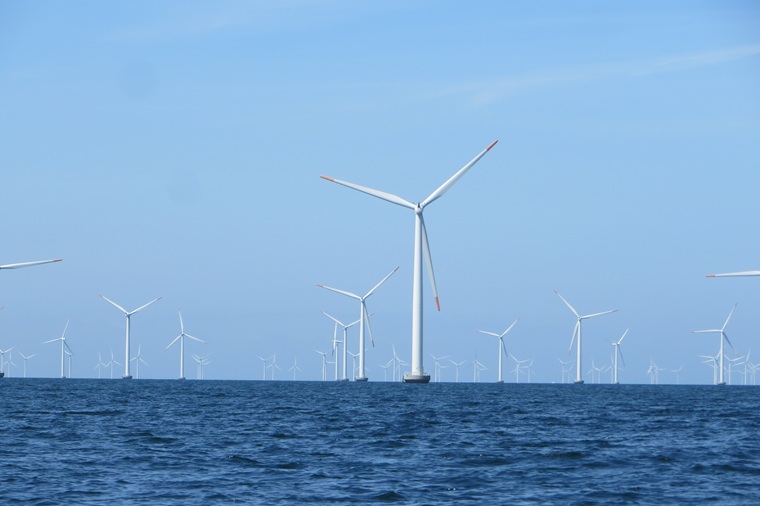 Auf dem Fehmarnsund stehen auf der Dänische Seite ein 'paar' Windräder.....