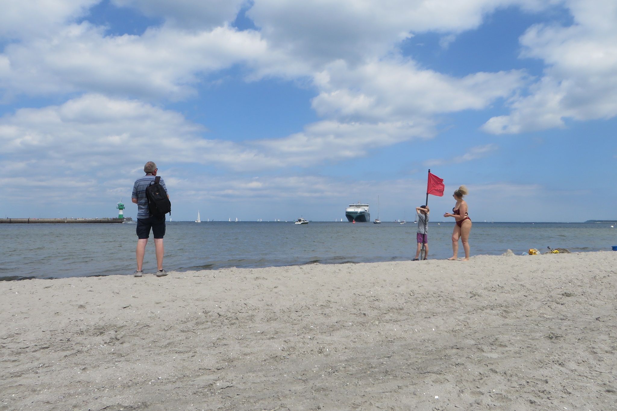 Zwischendurch hat der DLRG dann einmal alle Leute aus dem Wasser geholt, weil da ein sehr dicker Dampfer ankam.