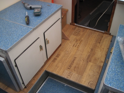 Die ersten neuen Fußbodenteile werden eingebaut.