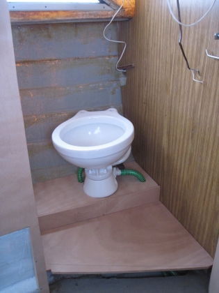 Die neue Elektrische Toilette wird das erste mal eingepasst.