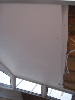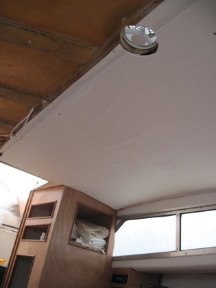 Die erste Hälfte der Deckenverkleidung ist eingebaut.