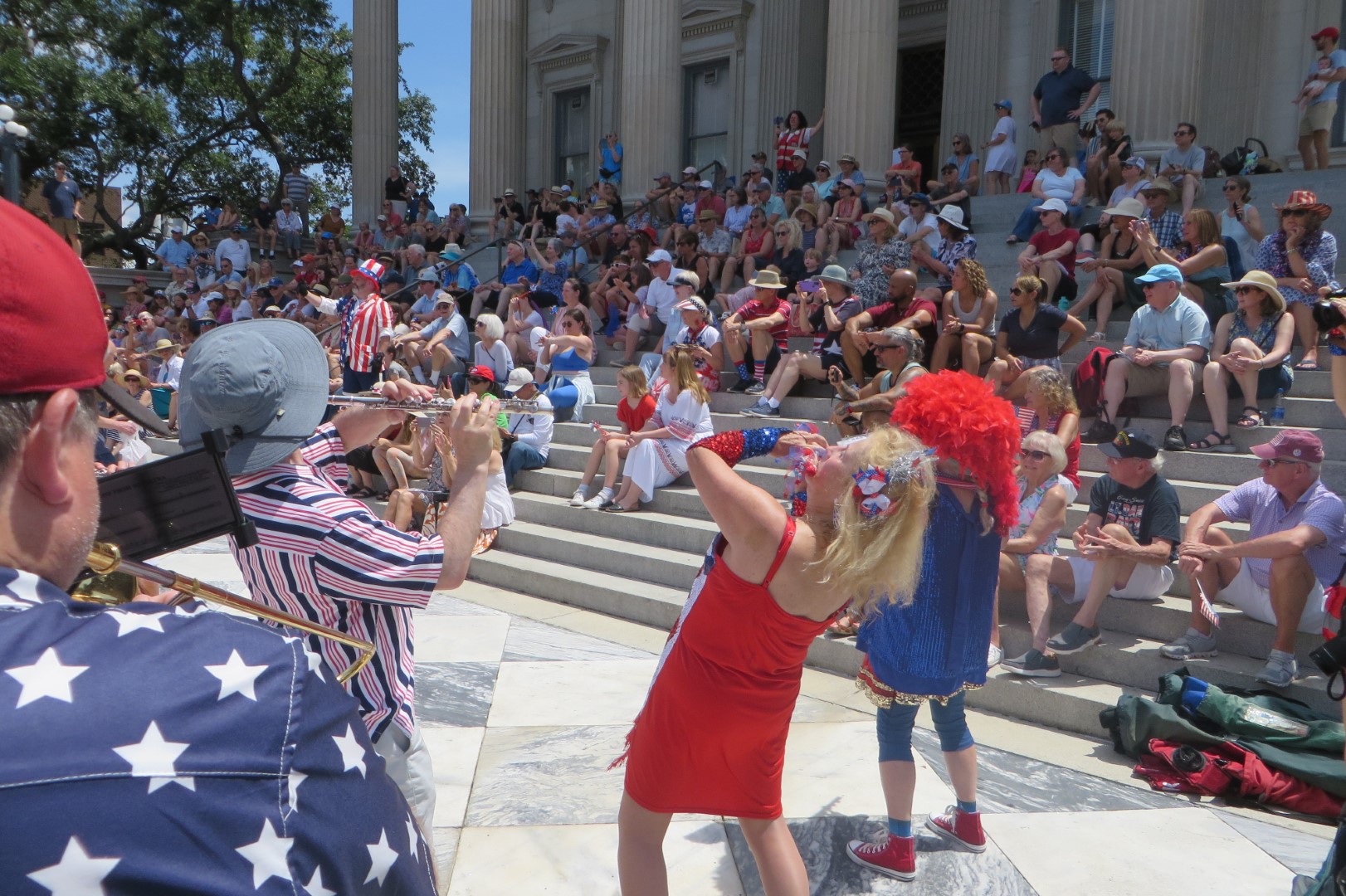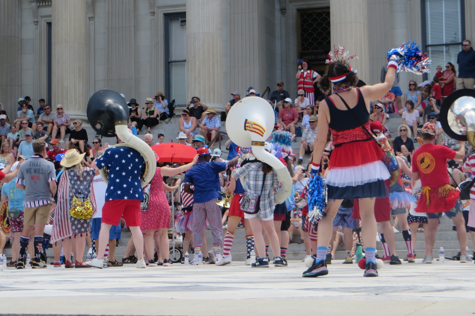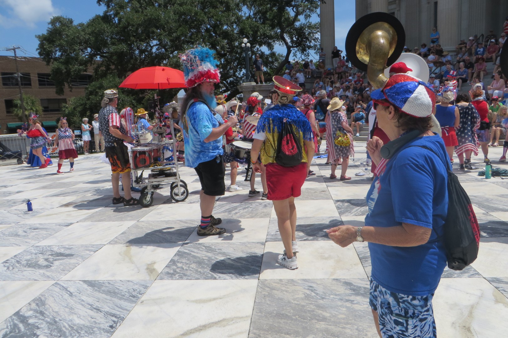 Als wir auf der anderen Seite rauskommen, denken wir 'Was für ein Lärm', wo kommt das denn her? Und dann sehen wir, das ein kleines Stück weiter eine Marching Band ein kleines Konzert gibt. Hier gab es aber 'nur' Musik, die sind nicht marschiert.