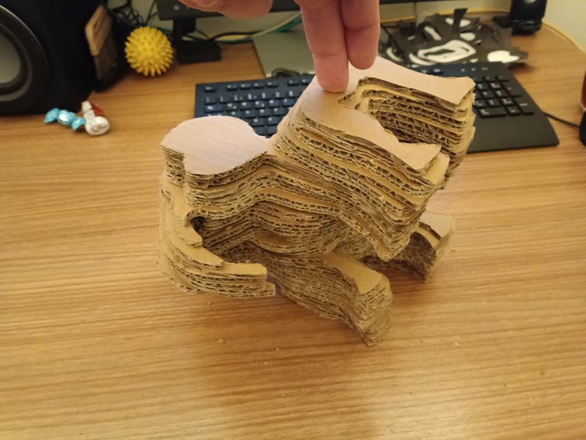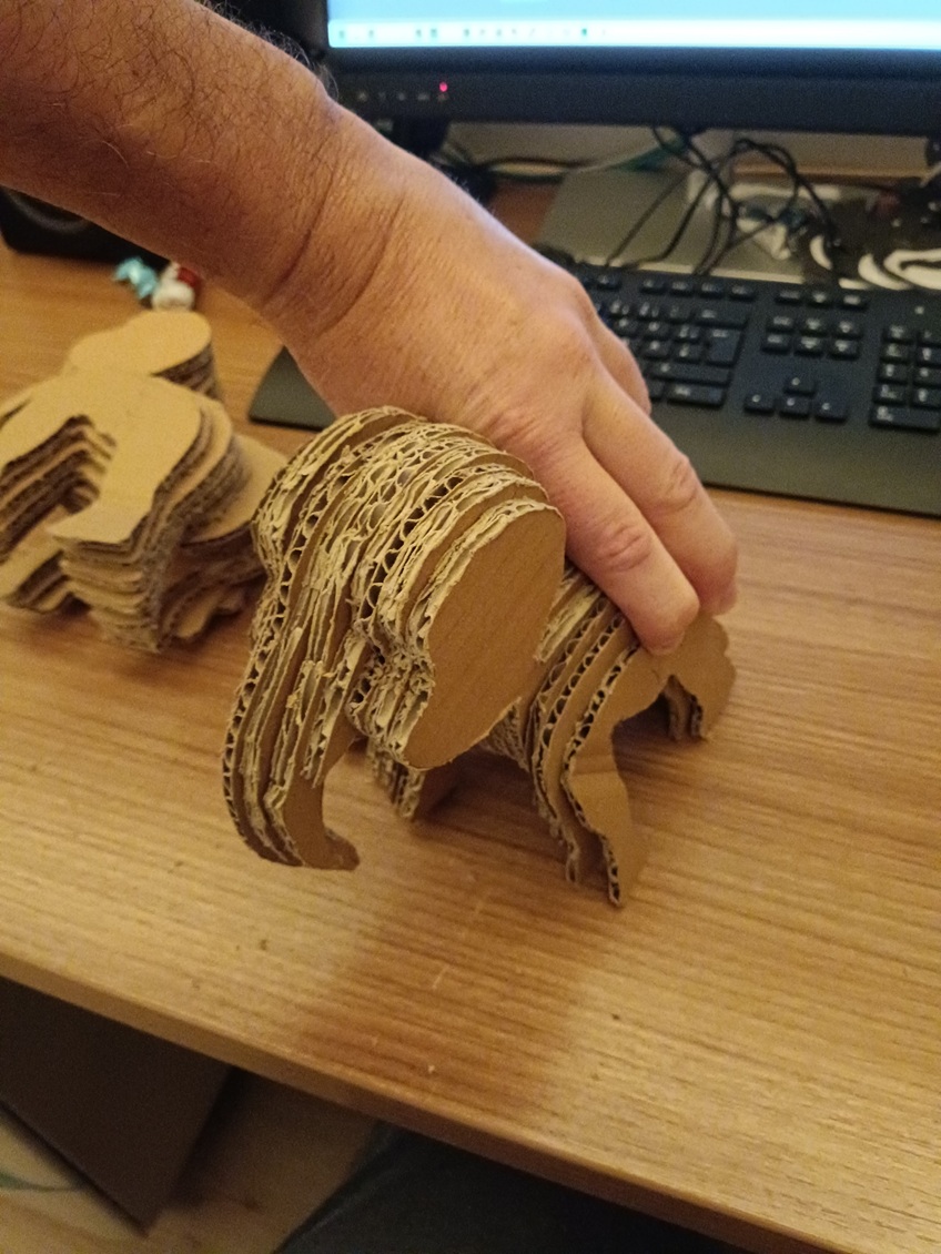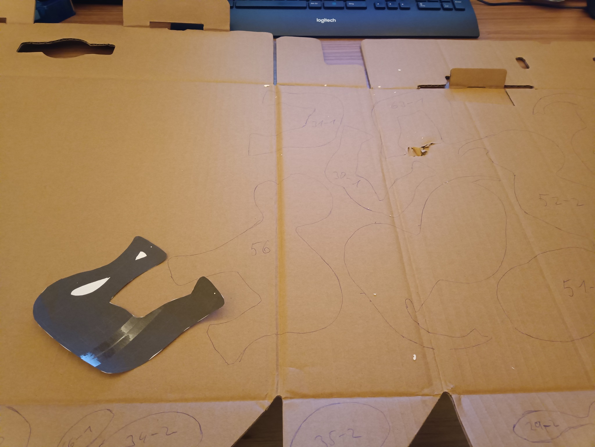 Nun kann man Pappe ja nicht in beliebigen Stärken kaufen, deshalb habe ich einfach nur jede zweite genommen.