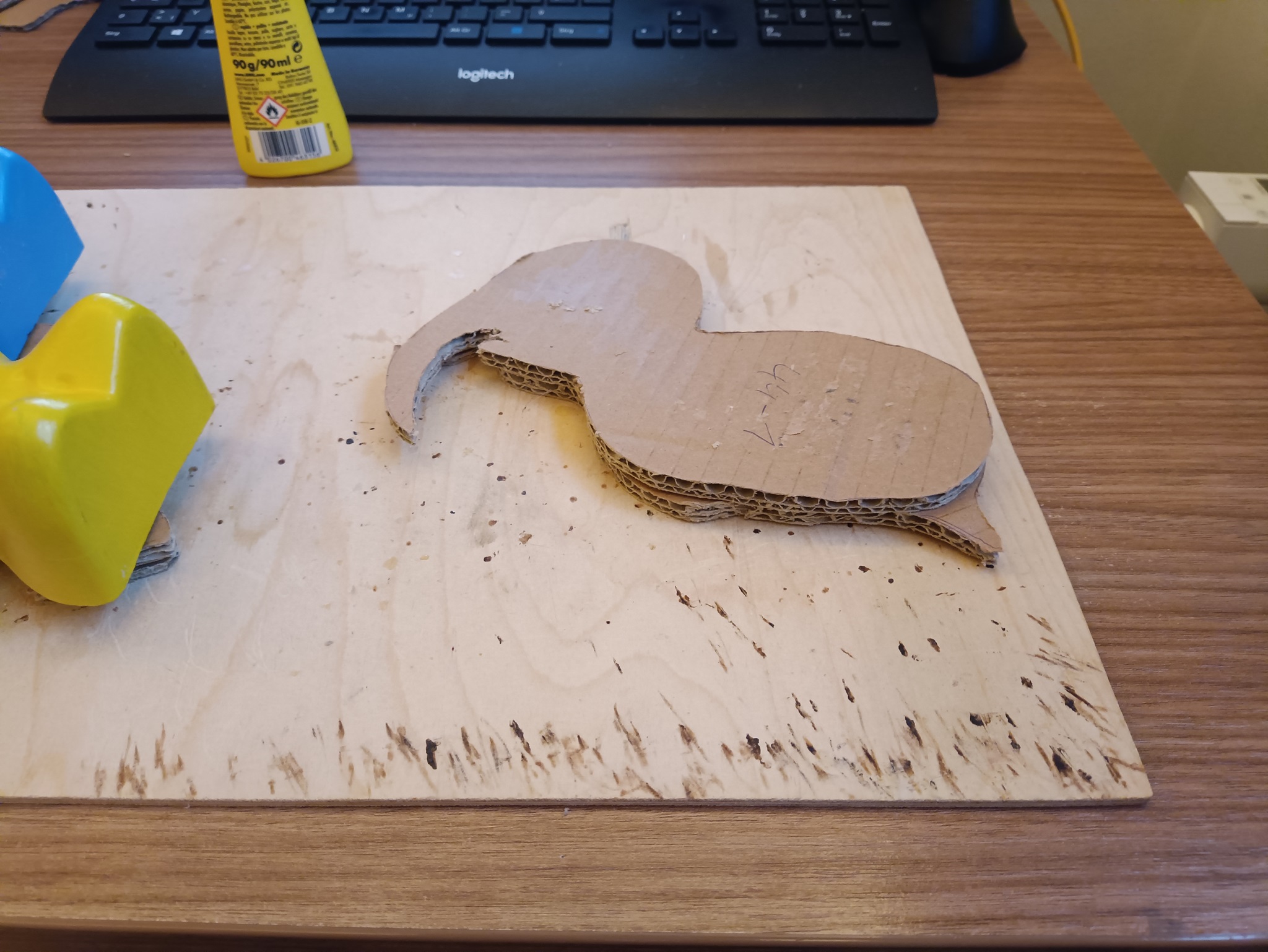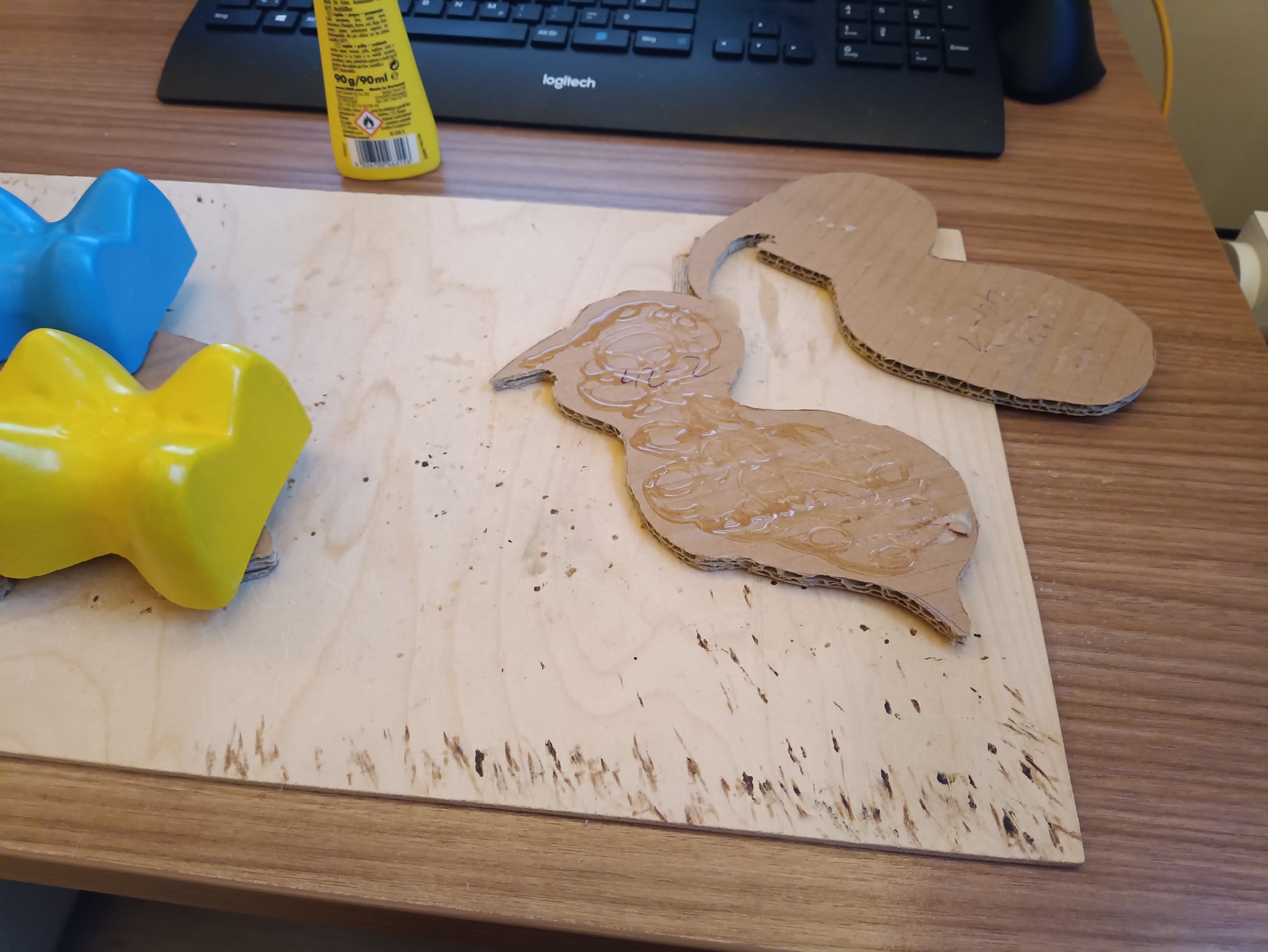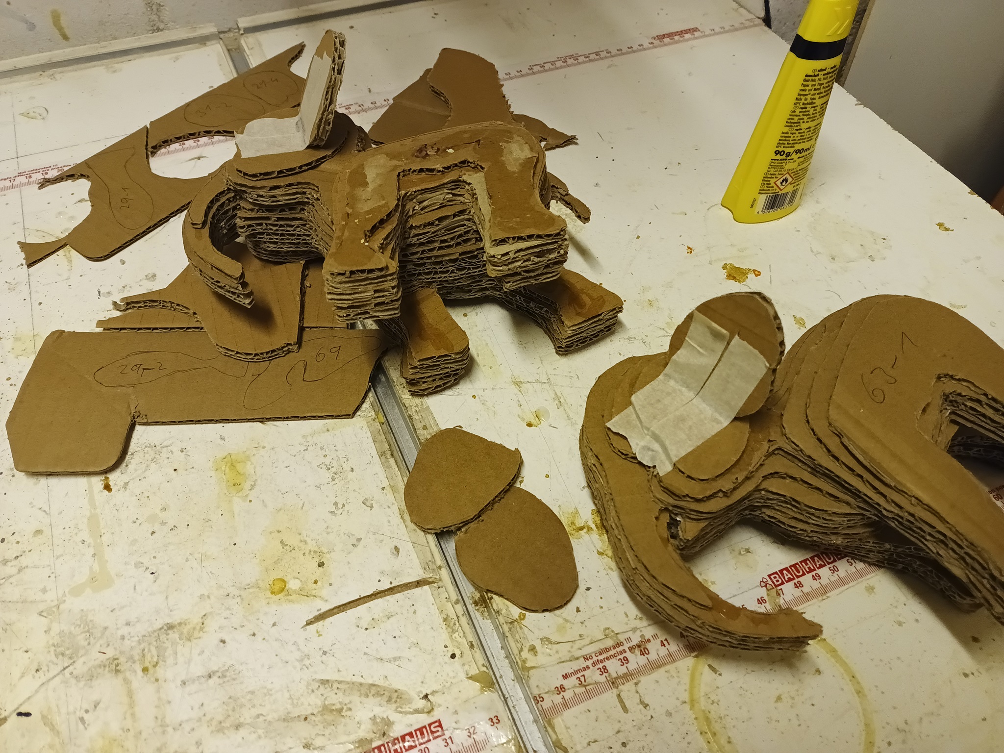 Die Pappen wurden dann mit UHU zusammengeklebt.