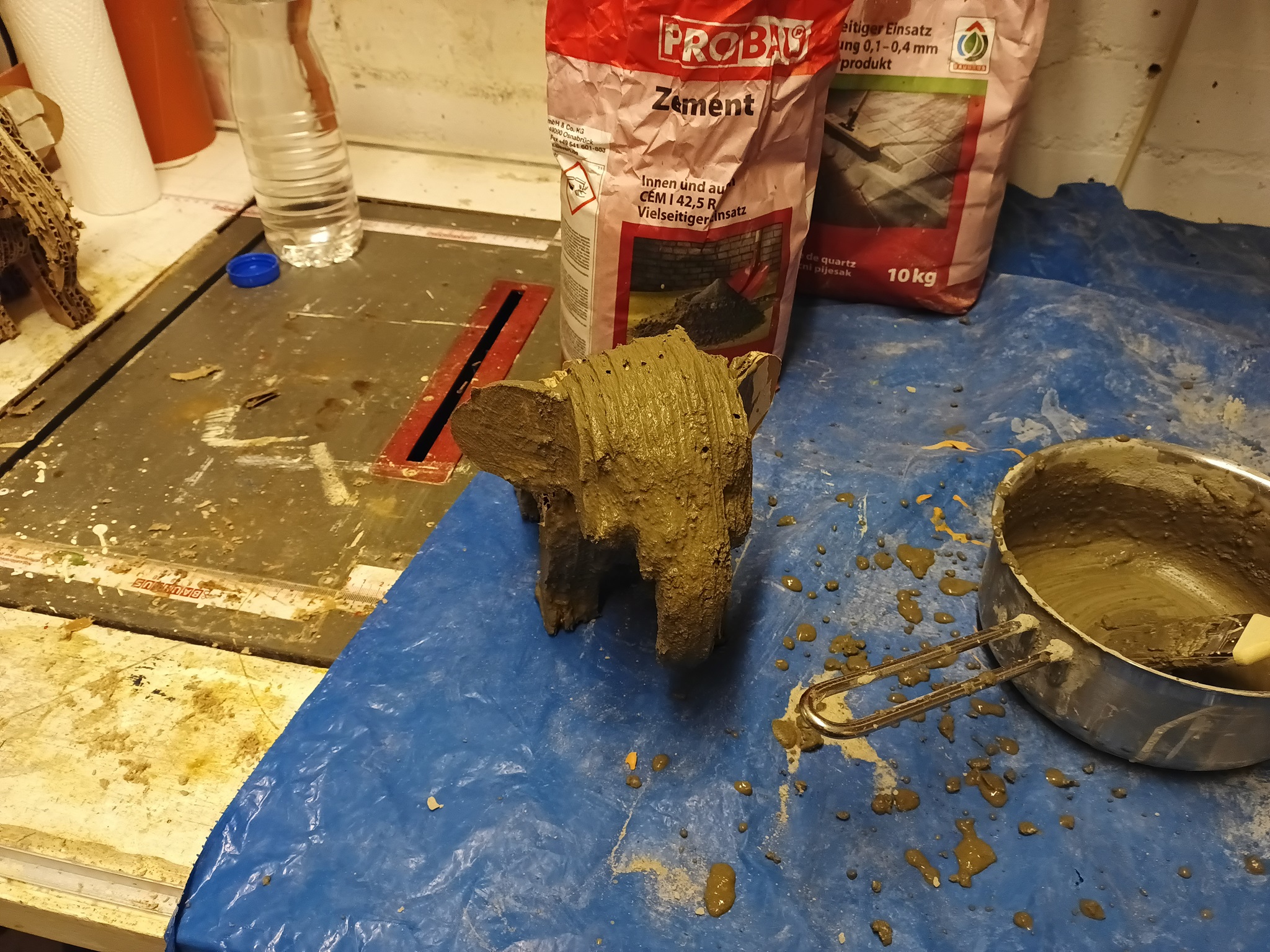 Dann habe ich ein wenig Beton angerührt.