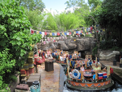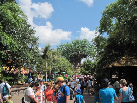 Auf der Main Street, der Eingangsstraße war es auch noch ziemlich voll, aber zum Glück verlief sich das dann ein wenig. Im Hintergrund ist schon die erste Station zu sehen, der Baum des Lebens.