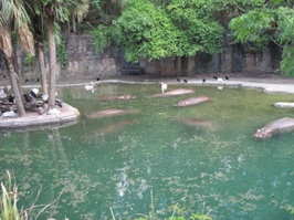 Falls man hier im Park überhaupt mal Zäune sieht, dann sind die nicht, damit die Tiere nicht weglaufen, sondern damit die Leute nicht in die Gehege fallen.