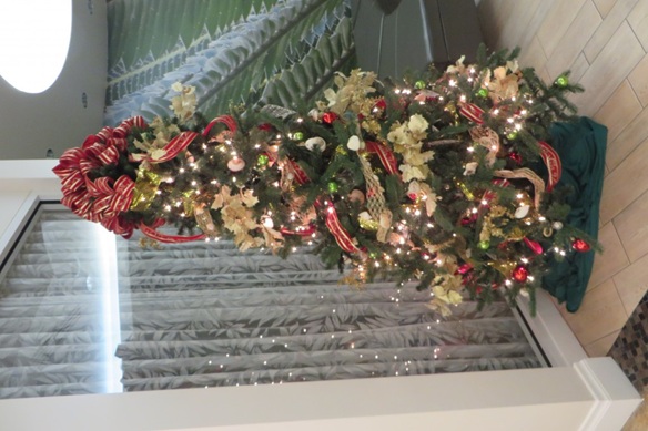 Wir hatten eigentlich wie immer ein Standard Auto gebucht. in der choiceline stand aber genau ein Auto. Wir haben nur die Tür aufgemacht und gleich wieder zu. Die ganzen Sitze sahen aus, als wenn da ein Joghurt explodiert wäre. Alles voller weisser Flecken. Wir sind dann natürlich zum Schalter und der Herr hat dann gemeint, das wir doch ein Auto aus der ‚große Standard Autos‘ line aussuchen könnten. War dann nicht so schlimm. Dann sind wir, mittlerweile im Dunkeln, zum ersten Publix und haben das nötigste eingekauft (Bier, Wein, Cola, Gatorade), anschließend ins Hotel. In der Eingangshalle stand natürlich bei knapp 30° ein Weihnachtsbaum.