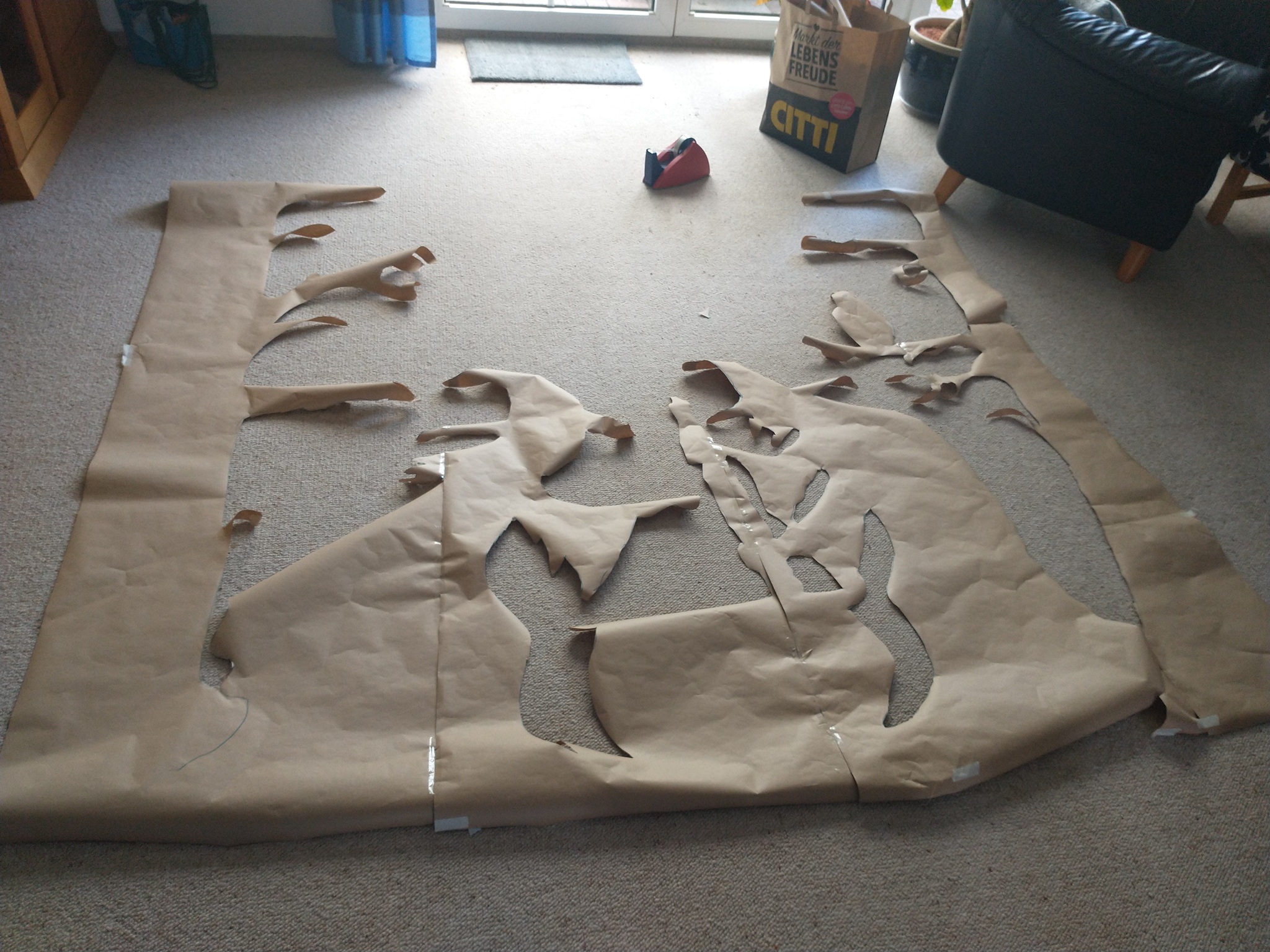 Dann also mit dem Beamer die Bilder aus dem Instructable auf das Packpapier und das ganze abgemalt.