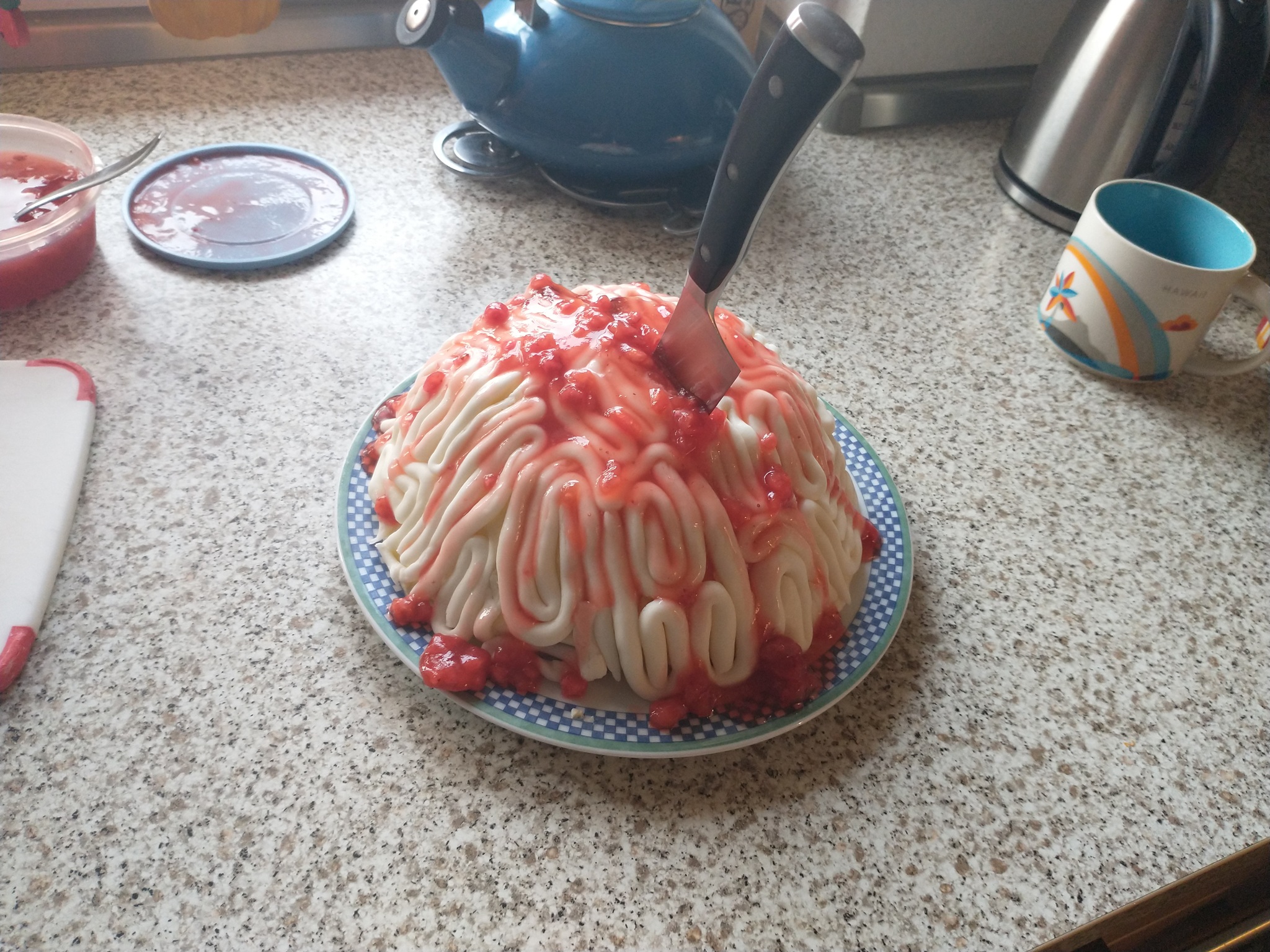 Ich war für den Kuchen zuständig und habe dann den Bloody Brain Cake gebaut.