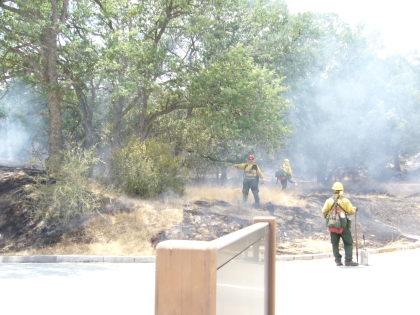 Auf dem Weg zum Park haben wir ein paar Feuerwehrmänner gesehen, die kontrolliert Flächen abgebrannt haben, damit es dort nicht auch zu einem großen Brand kommt.