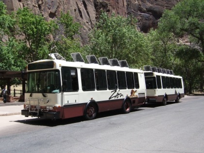 Im Zion gibt es einen großen Parkplatz am Eingang. Von dort wird man dann mit Shuttlebussen in den Park gefahren. Im Gegensatz zu den vorhergehenden ist man hier aber gleich unten und sieht das ganze nicht von oben.