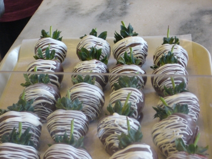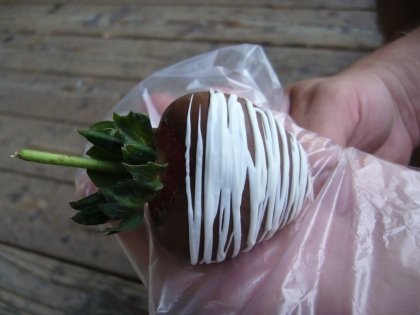 Dieses hier sind Erdbeeren, die fast so groß sind wie meine Hand.