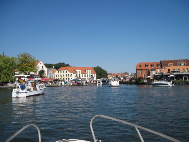Wir haben einen kleinen Blick in das neue Hafendorf Rheinsberg geworfen, wollten aber weiter bis in den Stadthafen. Der Hafenmeister hier hat uns auch gleich angeblubbert, das wir doch bitte wieder rausfahren sollen, wenn wir nicht festmachen.