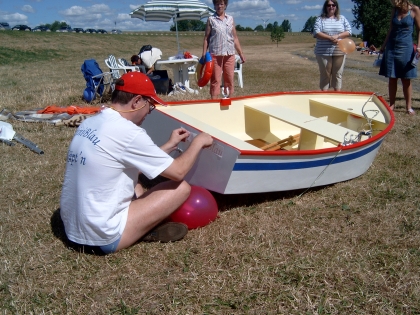 Natürlich bekommt das Kind erst einmal einen Namen: MiniBlau!!Dann erst einmal alleine probieren, ob es überhaupt schwimmt.