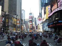 Auf dem Timesquare sassen sehr viele Leute mit Stühlen rum. Wir haben aber nicht herausgefunden, wo Sie die her hatten. Waren auf jeden Fall keine Stühle von einer Bar oder Restaurant. Sah eher so aus, als wenn die Leute sich die Stühle selber mitgebracht haben.