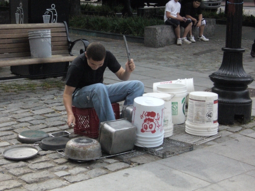 Und hier noch ein Strassenkünstler mit zwei sehr niedlichen Assistentinnen.