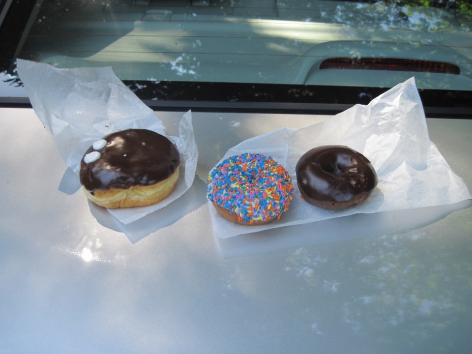 Und habe diese drei Doughnuts erstanden und im Laufe des Tages so verdrückt.