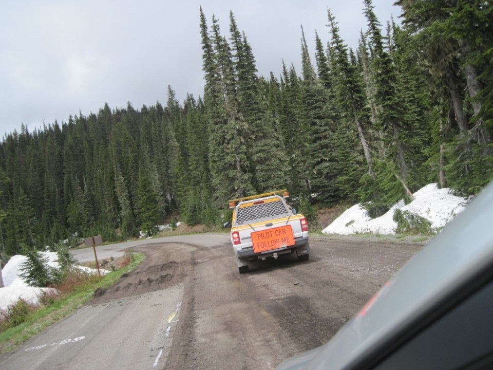 Ein ganzes Stück des Parks wurde gerade neu geteert. Damit die Touris wie ich nicht in die Löcher fallen, gab es da ein Follow Me Auto. Ich hatte meines ganz für mich alleine, das hat mich dann für ca. 10 Km über alle Gruben und Schlaglöcher gelotst.
