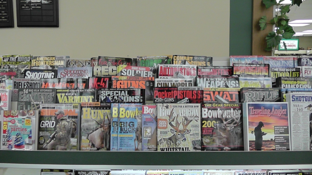 Dort wo bei uns und auch in den US Großstädten eher Haufenweise Frauenzeitschriften liegen, sah das Regal so aus. kein Wunder, das die gegen alle Waffengesetze sind.