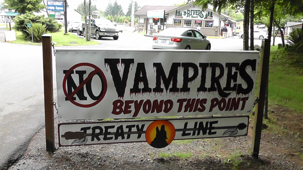 Wir haben dann herausgefunden, das die ganze Twilight (Biss zum Morgengrauen) Geschichte in dem Ort Forks und Umgebung spielt und deshalb hier alles darauf ausgerichtet ist.