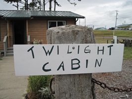 Mein Schwager hatte für uns eine Lodge in La Push für ein paar Tage gebucht. Bei der Reservierung hatte die Dame gesagt, das Sie noch die Twilight Cabin frei hätte. Haben wir uns nichts bei gedacht und gebucht. Nun ist von uns ja keiner mehr im Teenie Alter und deshalb nicht ganz so Fit in den total angesagten Filmen und Büchern der Jugendlichen. Um es vorweg zu nehmen, von dem Film Twilight hatten wir vorher zumindest schon mal gehört, hatten das aber in keinen Zusammenhang mit der ‚Twilight Cabin‘ gebracht.
